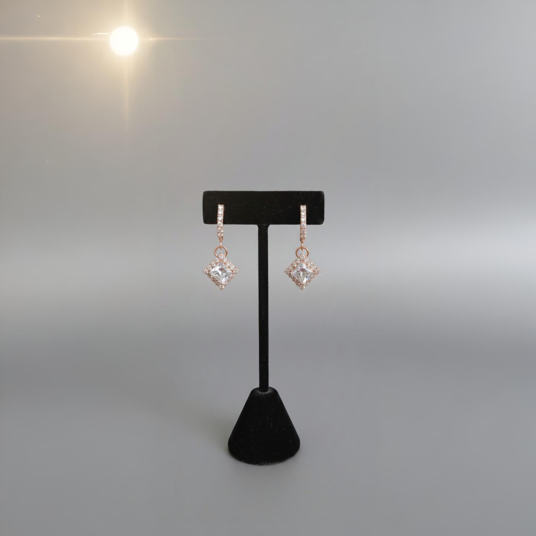 Royal Square Dangle| Shine Earrings|Square Solitaire Earrings|Sparkling Princess Earrings|Rose Gold Glam Danglers| Square Stone Earrings|Royal Look